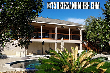 Our client wanted to replace their existing deck, cover the entire deck, & install lighting and fans. Finishing touches included wrapping the posts with stone columns, installing lighting & fans on the lower level, and staining the whole structure.
