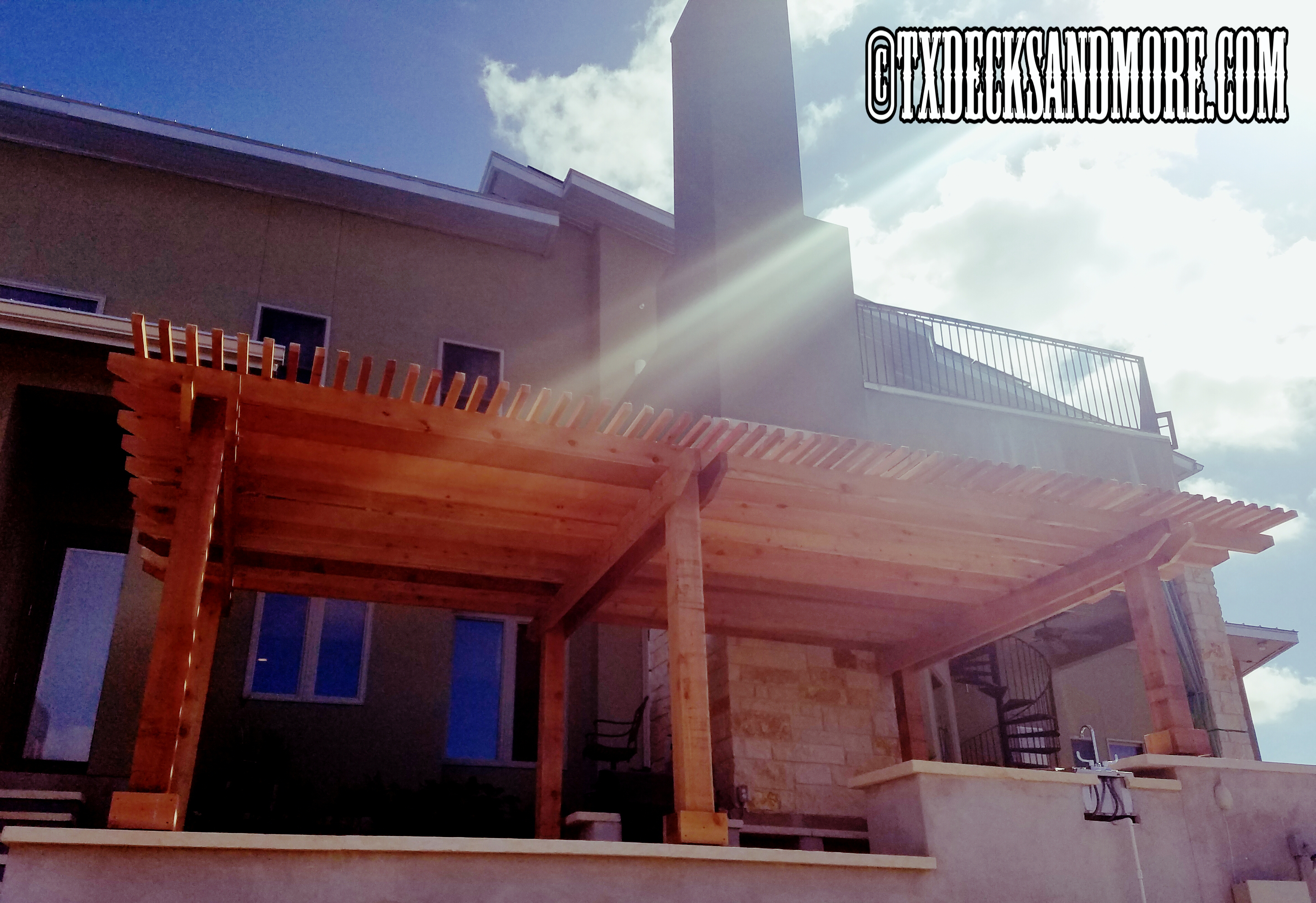Pergolas are a great way to create shade while keeping an open view and airflow. This is especially useful when grilling, as the smoke & heat can escape freely.